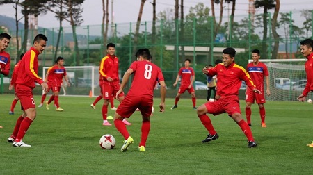 U20 Việt Nam ở buổi tập chiều 20/5 tại Cheonam. (Ảnh: báo Tiền Phong) |
