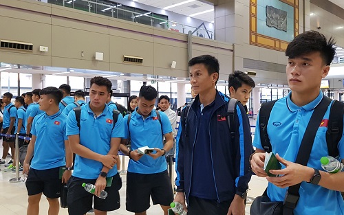 Các cầu thủ U23 Việt Nam di chuyển với hành trang gọn nhẹ. |