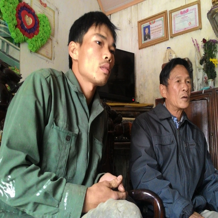 Hai bố con ông Hoàng Văn Xìn và Hoàng Văn Thành kể lại sự việc. |