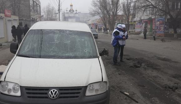 Các thành viên của Tổ chức An ninh và Hợp tác châu Âu (OSCE) tại thành phố cảng Mariupol, miền Đông Ukraine ngày 24/1/2015. |