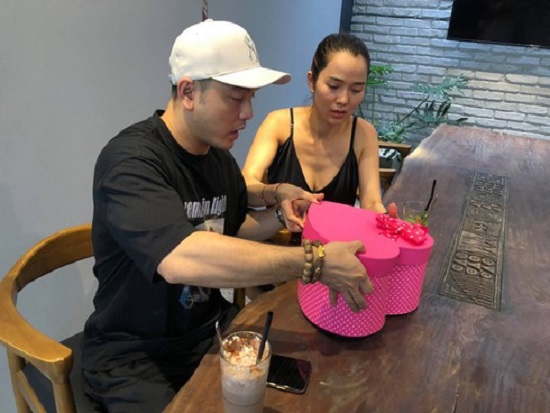 Ca sĩ Ưng Hoàng Phúc tặng quà vợ. |