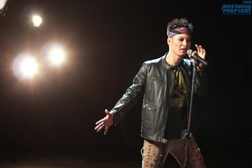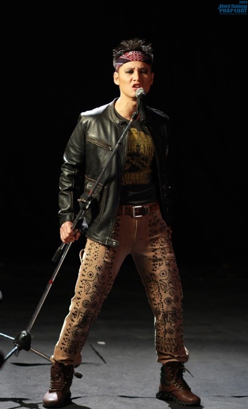 | Đức Tuấn xuất hiện với trang phục và phong cách của một rocker thực thụ. |