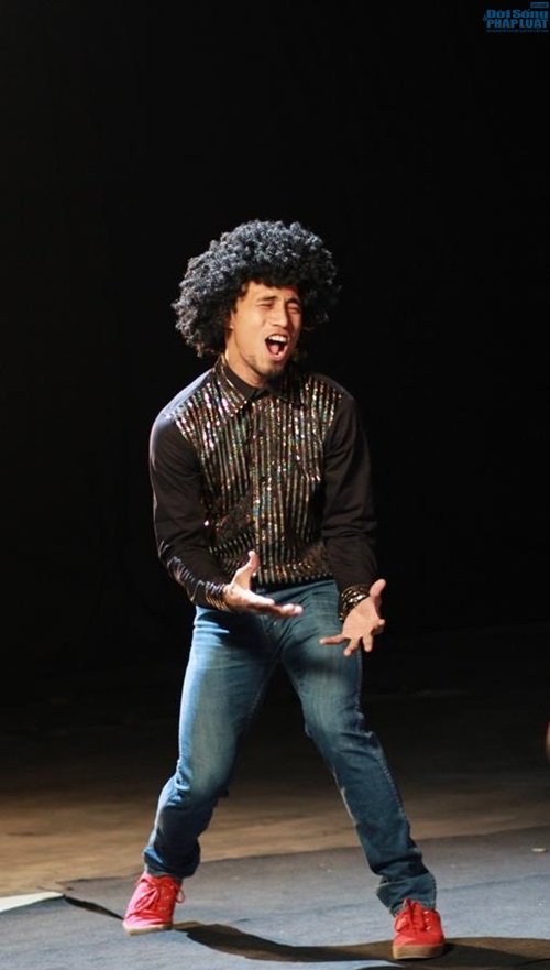 | Quý ông hát rock Phạm Anh Khoa không ngần ngại hoá trang và hát disco một cách say đắm, khiến người khác cũng muốn nhún nhảy theo. |