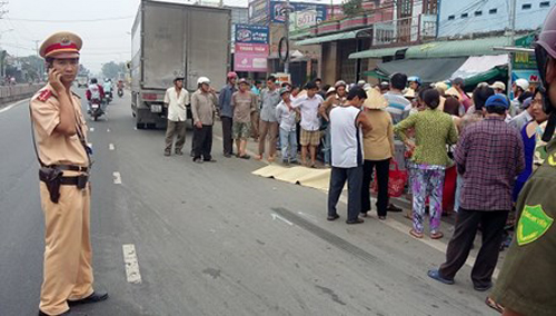 Theo một người dân chứng kiến vụ tai nạn cho biết, khi ô tô tải va chạm vào xe mô tô, cháu trai ngồi sau té ngãxuống đường lọt vào gầm xe tải và bị kéo lê trên đường khoảng 10m.