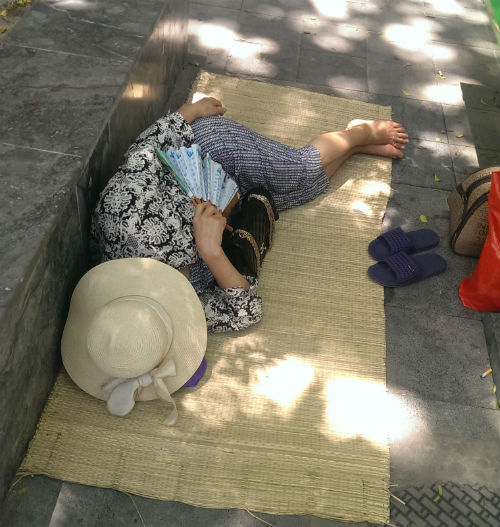 Gốc cây là nơi tránh nóng lý tưởng với nhiều người.