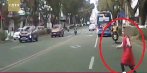 Trong clip, bé gái lao từ lề đường ra trước mũi xe rồi ngã lăn ra đường. Sau đó, bố mẹ của bé gái bước tới, bế con tới chỗ tài xế để đòi bồi thường.