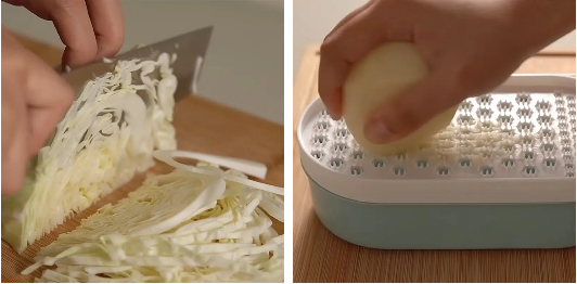 - Khoai tây gọt vỏ, rửa sạch rồi bào nhuyễn.