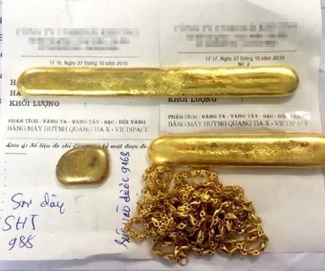 “Khi hơ qua lửa, nếu là vàng xấu thì sẽ bị đen đi. Tuy nhiên, loại vàng này thì vẫn giữ được màu vàng khá tự nhiên dưới sức nóng đèn khò, chỉ hơi bị sạn một tý nên tôi đánh giá chất lượng vàng chỉ hơi kém, định giá 3 triệu đồng/chỉ, thấp hơn giá vàng 9999 khoảng 70.000 đồng. Tổng cộng 7 cây vàng tôi mua hết 210 triệu đồng”, anh P. nói.