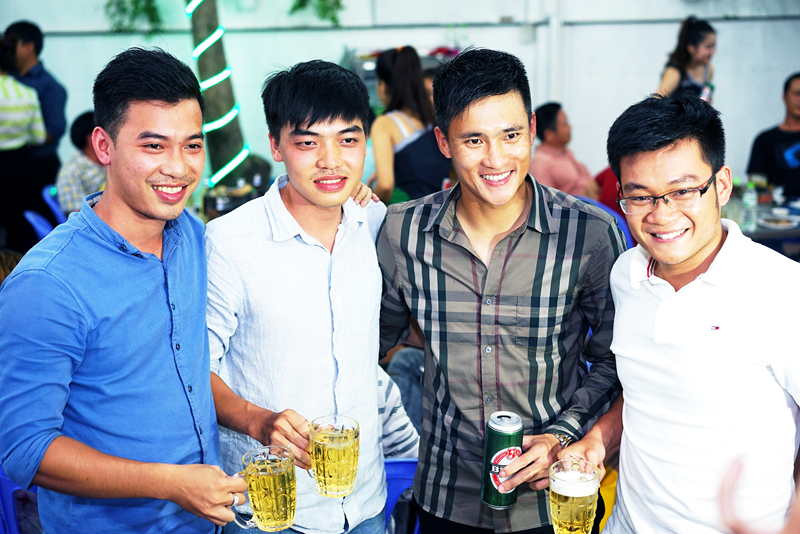 Công Vinh vui vẻ ăn uống cùng bạn bè dù thiếu vắng Thủy Tiên. |