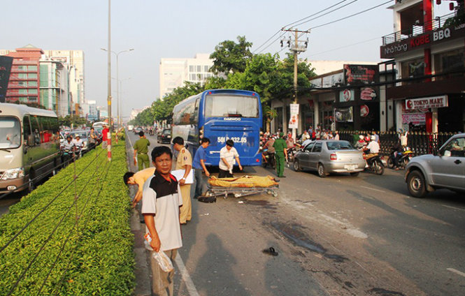 Vừa lúc đó, xe khách mang biển số 50LD - 032.05 đang chạy theo hướng từ cầu vượt Lăng Cha Cả về ngã tư An Sương không xử lý kịp đã cán lên khiến người đàn ông này chết tại chỗ.