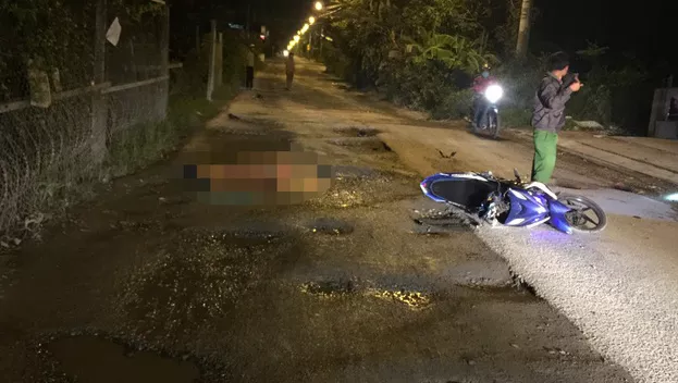 VietNamNet thông tin thêm, tại hiện trường vụ tai nạn, xe máy nạn nhân hư hỏng. Xung quanh phương tiện và thi thể nạn nhân là đoạn đường dày đặc những ổ gà.