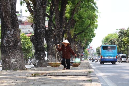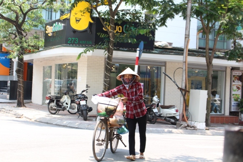 Theo ghi nhận của PV, khoảng 11h trưa 17/5, tại một số tuyến phố ở Hà Nội, nhiều người lao đông vẫn miệt mài mưu sinh dưới thời tiết nóng bức và khói bụi. |