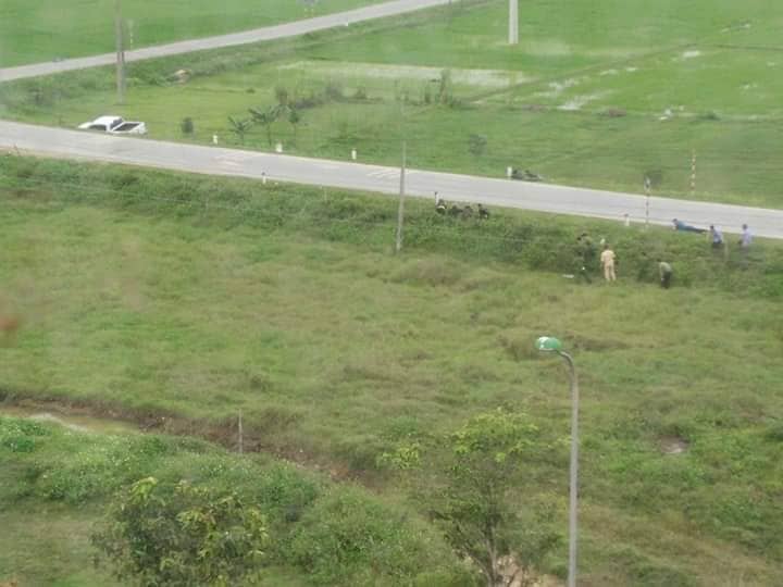 Khi phương tiện của bọn chúng chạy đến ngã tư giao đường liên xã Lâm - Giang thì bị lao xuống ruộng. Lúc này, nhóm đối tượng đã nhảy ra khỏi xe, ôm súng cố thủ tại khu vực cống nước gần chi cục Thuế xã Sơn Giang.
