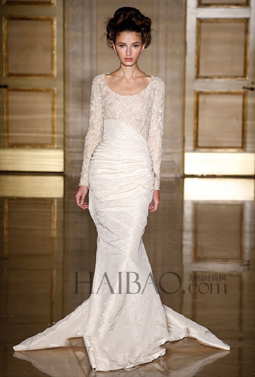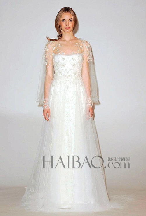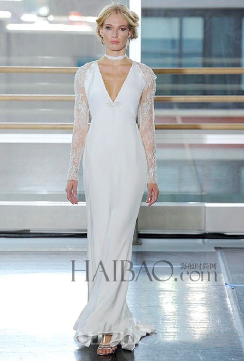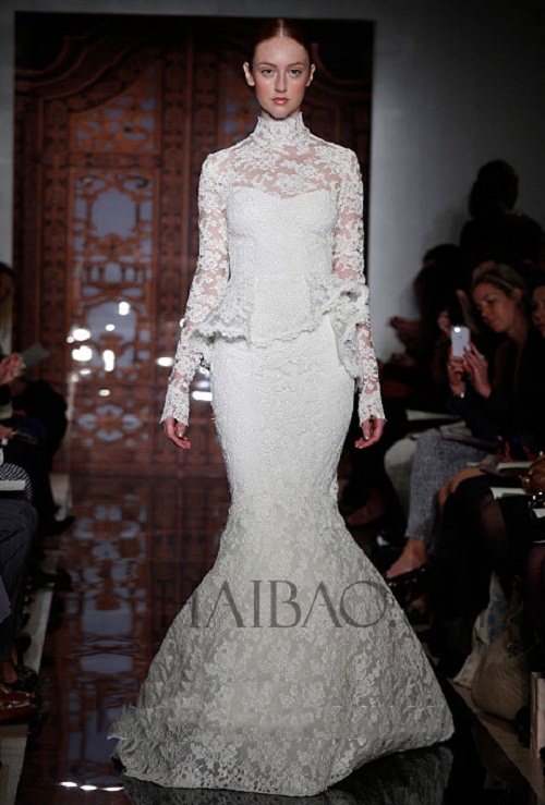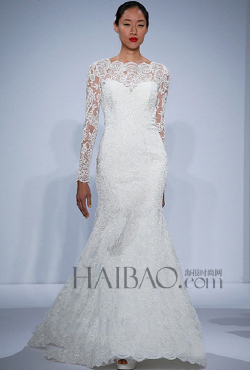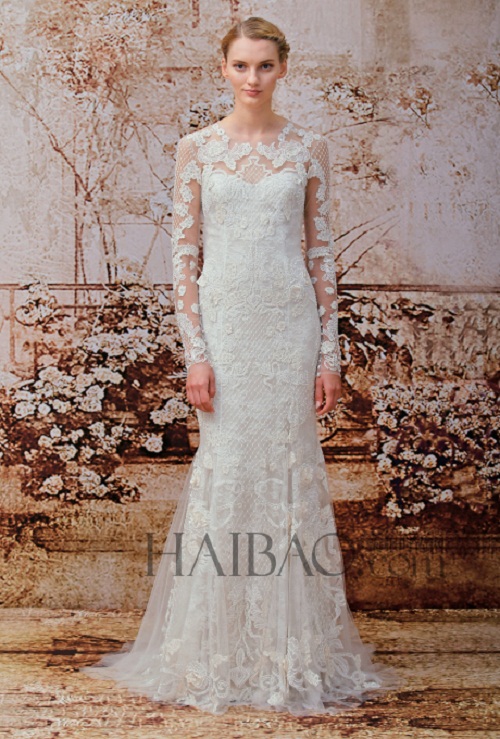 Năm 2014, một loạt những ông lớn hàng đầu ngành thiết kế váy cưới như Pronovias, Monique Lhuillier, Marchesa,…đã tung ra bộ sưu tập mới của mình. Tuy nhiên, trong năm nay, mẫu thiết kế nổi trội chính là những chiếc váy cưới có tay dài thanh lịch, thiên về các mẫu tối giản, tạo điểm nhấn tránh họa tiết rườm rà hay quá cầu kỳ. Góp một phần không nhỏ để tạo nên cơn “sốt” này chình là chiếc váy cưới 400.000 bảng Anh (tương đương 8,4 tỉ đồng) của Alexander McQueen, mà công nương Kate đã mặc trong đám cưới Hoàng gia Anh. Thanh lịch, tao nhã nhưng không hề có cảm giác bó buộc, nhẹ nhàng , lãng mạn, mà vẫn thể hiện đẳng cấp của riêng mình- đó chính là điều mà xu hướng năm nay “tô điểm” cho ước mơ hồng của mọi cô gái.