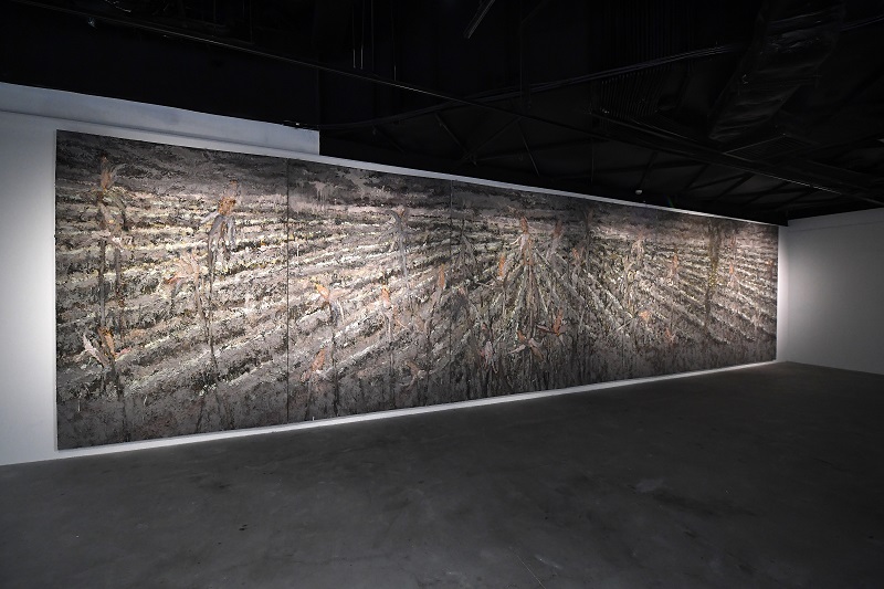 Tác phẩm “Cánh đồng” có kích thước lớn nhất trong triển lãm lần này (3 x 12m). |