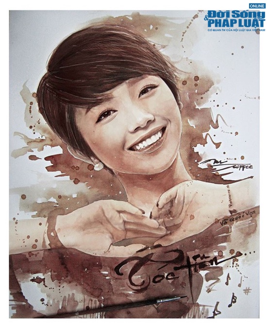 Chân dung ca sĩ Mỹ Tâm được vẽ bằng chất liệu cà phê. |