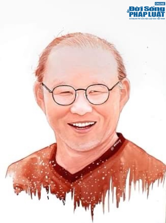 Gương mặt huấn luyện viên Park Hang-seo được phác thảo tài tình qua nét vẽ. |