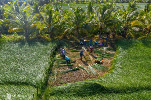 Cói được trồng như một loại cây chủ lực ở vùng Vũng Liêm (Vĩnh Long). Cói sau khi thu hoạch phơi sẽ được vận chuyển bán cho các nhà sản xuất chiếu, sản xuất thủ công mỹ nghệ. Ảnh: Trung Anh |