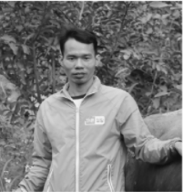 Anh Hà Hữu Đức và trâu chọi mang số 17, anh có gần 20 năm kinh nghiệm chăm sóc trâu chọi. Ảnh: Đặng Thủy. |
