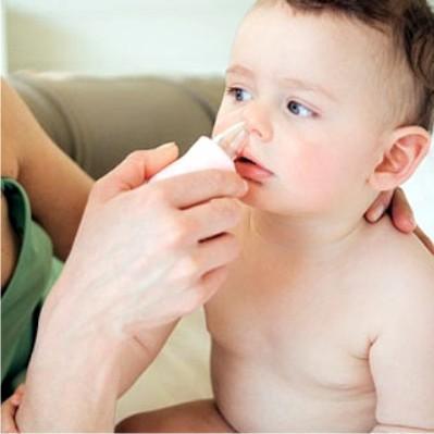 Sau khi rửa nhầm bằng cồn 90 độ, mẹ bé M. phát hiện bé khóc lớn kèm theo nước mũi chảy nhiều.