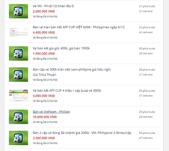 Giá vé trận bán kết Việt Nam và Philippines được rao bán trên chợ đen. Ảnh: Saostar |