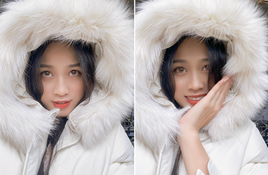 Nhan sắc xinh đẹp lung linh tựa như nàng công chúa tuyết của hoa hậu Đỗ Thị Hà. |