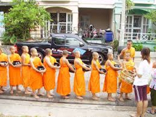 | Những thầy tu ở Chiang Mai cũng như ở Thái, đi hành hương vào những buổi sáng sớm, họ chỉ nhận những gì người dân dâng lên chứ không xin ăn. |