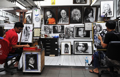 Đặc biệt, nơi đây cuốn hút khách du lịch còn bởi vì không gian riêng rất lặng lẽ nhưng không kém phần thú vị với các phòng tranh mini và những họa sĩ, hay những sinh viên trẻ miệt mài ngồi vẽ ngay dưới tầng hầm. Dạo quanh phòng tranh, bạn sẽ chứng kiến cảnh các họa sĩ sinh đang mải mê múa cọ lúc nửa đêm, còn du khách thì ra vào đặt hàng nườm nượp.