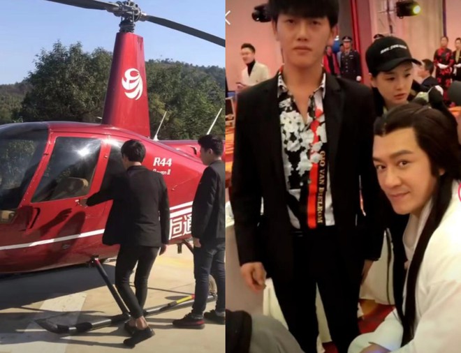 Vũ Văn Bân Bân sử dụng cả trực thăng để tiếp cận người đẹp. Anh cũng gặp gỡ Trần Hạo Dân và chia sẻ với nam diễn viên tình cảm mà anh dành cho Địch Lệ Nhiệt Ba. Ảnh: Weiboo |