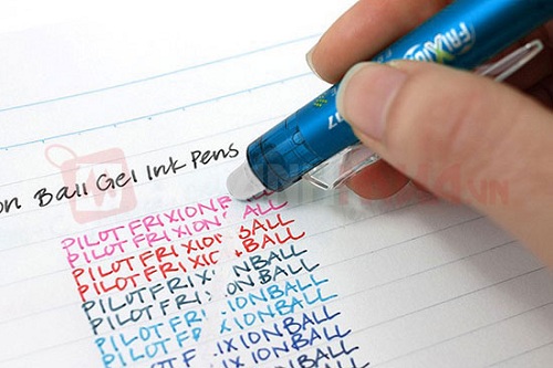 Cùng đó, nếu không tẩy xoá, khi hơ nóng ở nhiệt độ trên 70 độ mực bút sẽ biến mất và để lại vào môi trường dưới -18 độ C (như cho vào tủ lạnh) là lại hiện ra bình thường.
