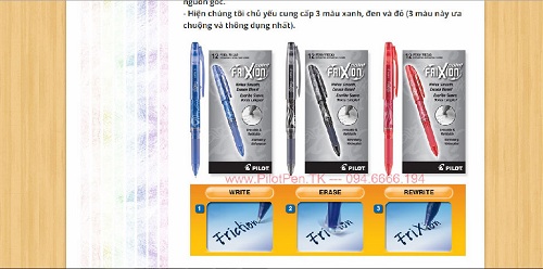 Trên thị trường Việt Nam, hiện bút bi "ma thuật" vẫn được rao bán công khai trên mạng với giá từ 70.000 - 95.000 đồng/chiếc tuỳ nơi với tên gọi Frixion Pilot, Firixon Ball3 với 3 loại ruột mực khác nhau là màu xanh, đen, đỏ. Hầu hết được quảng cáo xách tay từ Nhật Bản.