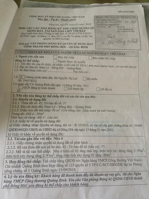 Hơn 1 năm sau, bà Lợi nhận được giấy thông báo đòi nợ của Viettinbank Quảng Bình với số tiền hơn 1,5 tỷ đồng. Theo bà Lợi thì nếu như bà chưa hết trả nợ thì tại sao Viettinbank Quảng Bình lại làm giấy xóa nợ cho bà và nếu chưa trả hết nợ thì tại sao sau khi bán tài sản thế chấp không làm hợp đồng chốt nợ mà đến tận hơn 1 năm sau mới gửi thông báo yêu cầu trả nợ?