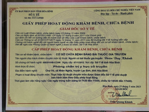 Giấy phép hành nghề của ông Khánh. Ảnh: T.Đ |