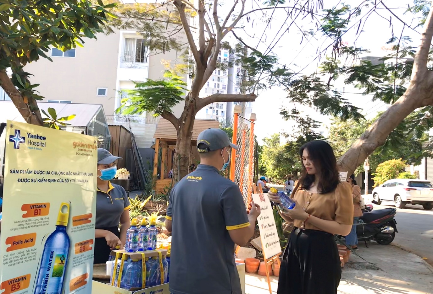 | Nước vitamin Yanhee đang được quảng bá và tiếp thị tại một số điểm |