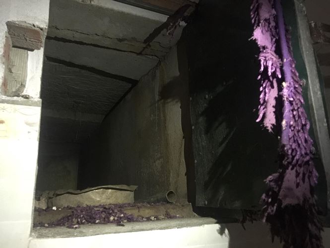 Lối thoát hiểm trong căn hầm đủ chỗ cho 1 người di chuyển - Ảnh: Tiền Phong |