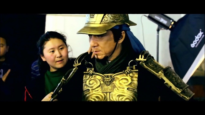 ![]() Thành Long đích thân thiết kế và chỉnh sừa một chiếc yên ngựa trong phòng đạo cụ. |
