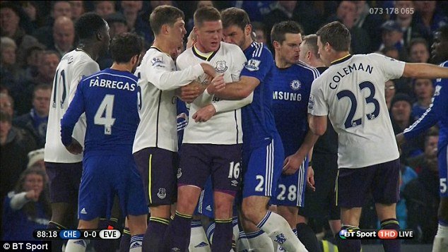 Tình huống nói trân diễn ra ở phút 89 trận Chelsea tiếp Everton trên sân nhà thuộc vòng 25 Premier League rạng sáng 12/2. Cụ thể sau khi phạm lỗi với Willian và bị thổi phạt, James McCarthy bên phía Everton đã có những hành động gây hấn. Điều đó buộc Branislav Ivanovic quàng tay qua cổ và ghì chặt cầu thủ đối phương. Và để hạ nhiệt những cái đầu nóng, trọng tài Jonathan Moss đã rút ra 3 thẻ vàng dành cho cầu thủ hai bên. Hành vi của Ivanovic khiến anh đối mặt án phạt treo giò 3 trận.