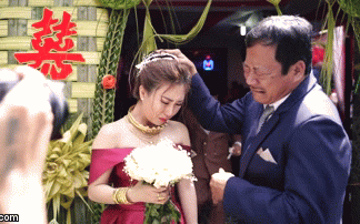 Người bố bịn rịn, nước mắt lưng tròng, ôm chặt con gái và nói những lời gửi gắm với chàng rể.