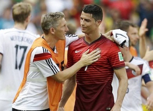 ![]() Ronaldo được Schweinsteiger an ủi sau trận Bồ Đào Nha để thua Đức. |