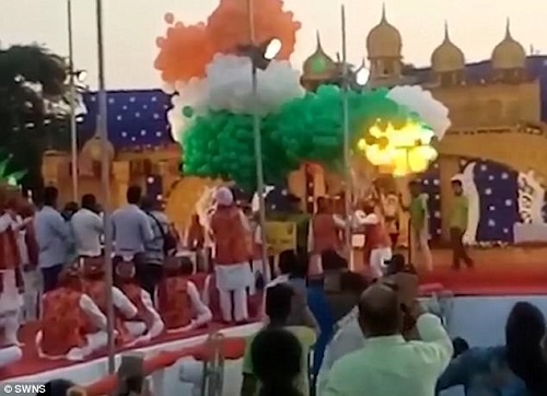 Một sự kiện ở Ấn Độ đã rơi vào tình trạng hỗn loạn khi hàng trăm chiếc bóng bay bùng nổ tạo thành một quả cầu lửa khổng lồ khiến 15 người phải nhập viện.