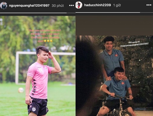 Quang Hải và Đức Chinh phản ứng hài hước về trend "Hải, quay xe". |