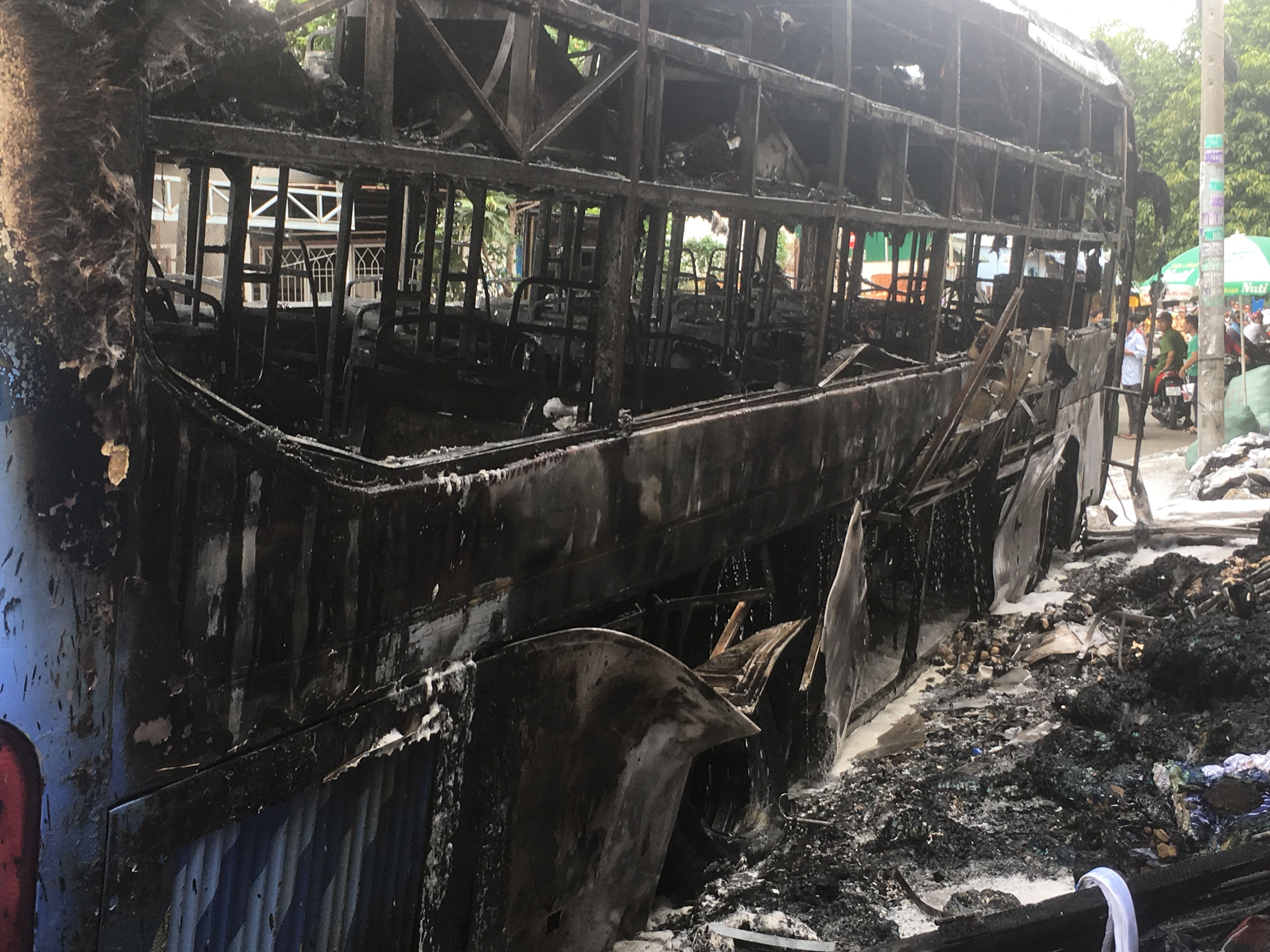 Theo nhân viên của nhà xe này, thời điểm xảy ra sự việc trên xe không có hành khách nên may mắn không có thương vong về người, nhưng vụ cháy khiến cho cả khu phố náo loạn.