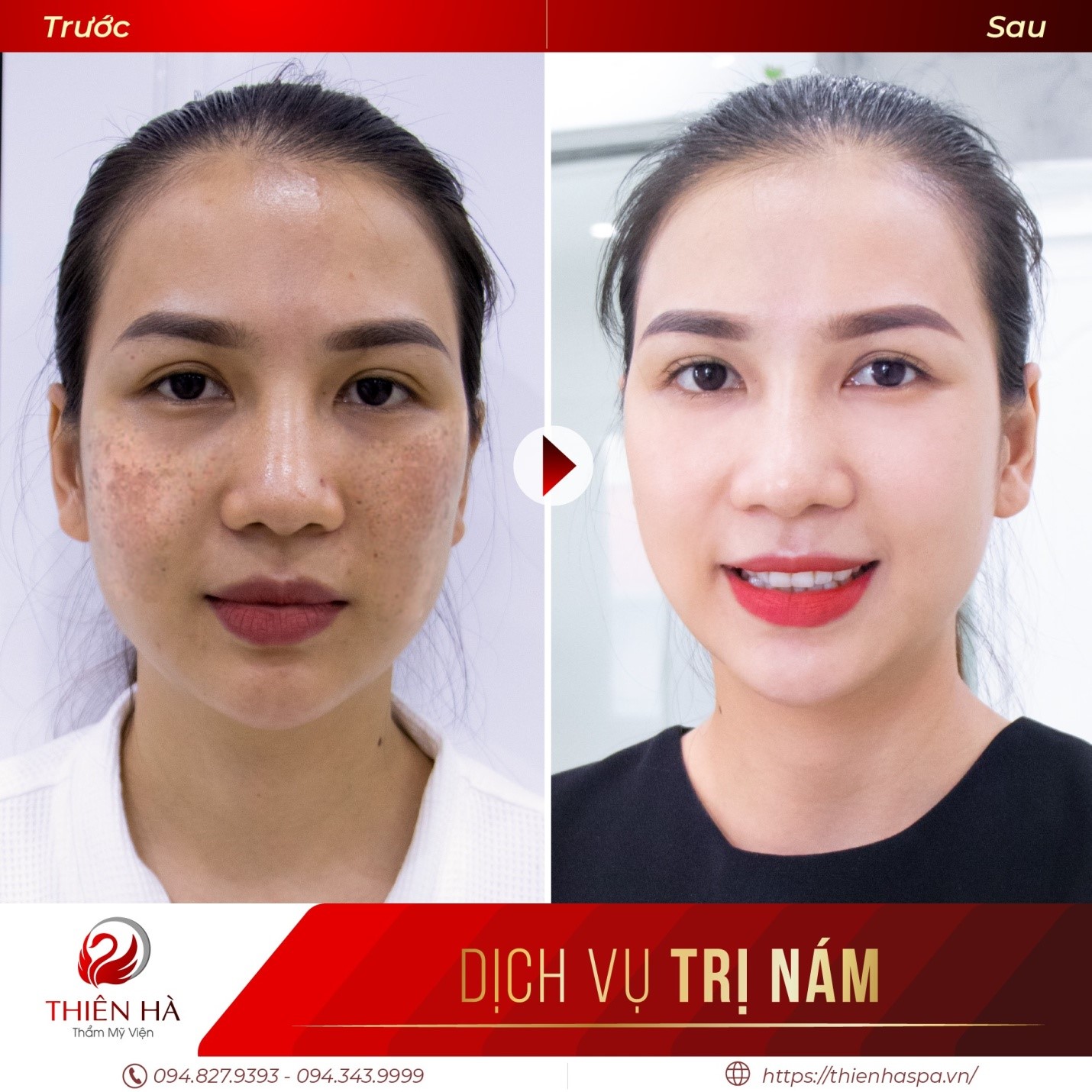 Kết quả rõ ràng trước và sau khi điều trị da tại Thiên Hà Spa. |