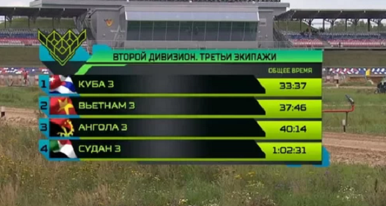 Kíp xe VN3 hoàn thành phần thi sau 37 phút 46 giây, xếp sau đội Cuba với kết quả 33 phút 39 giây, đứng trên Angola và Sudan.