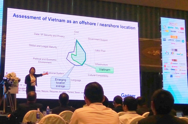 Trong khuôn khổ hội nghị gia công CNTT Việt Nam (VNITO), bà Yuko Adachi, Phó chủ tịch nghiên cứu của Gartner tại khu vực châu Á Thái Bình Dương đã có bài phát biểu về tiềm năng, thách thức và hướng phát triển của thị trường gia công phần mềm CNTT trong và ngoài nước.