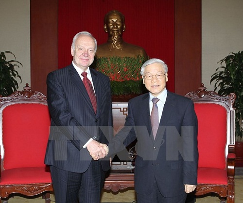 Chiều 23/3, tại Trụ sở Trung ương Đảng, Tổng Bí thư Nguyễn Phú Trọng đã tiếp thân mật Đại sứ Đặc mệnh toàn quyền Liên bang Nga C.V. Vnukov đến chào nhân bắt đầu nhiệm kỳ công tác tại Việt Nam.