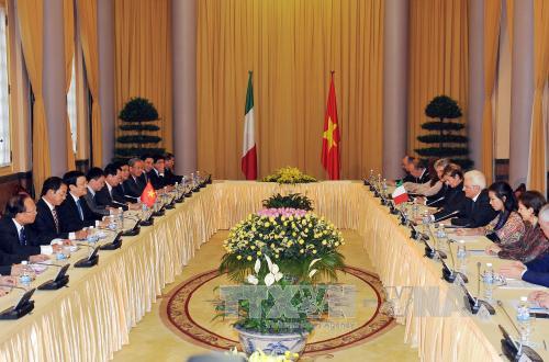 Chủ tịch nước Trương Tấn Sang và Tổng thống Sergio Mattarella đều hài lòng về việc hai bên có nhiều cơ chế trao đổi hợp tác như đối thoại chiến lược, đối thoại chính sách quốc phòng, lập ủy ban hỗn hợp về hợp tác kinh tế. Trao đổi các đoàn cấp cao và các bộ, ngành, địa phương ngày càng thường xuyên hơn, tạo điều kiện về cơ sở pháp lý và thúc đẩy mạnh hơn nữa các lĩnh vực hợp tác.