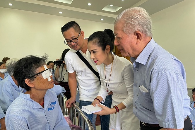 Các bệnh nhân đến từ miền Tây được miễn phí phẫu thuật Phaco - 1,5 triệu đồng mỗi ca, được tặng quà và hỗ trợ chi phí đi lại. Bên cạnh đó, "Người đẹp Tây Đô" còn tâm sự, hỏi thăm tình hình sức khỏe của bà con.