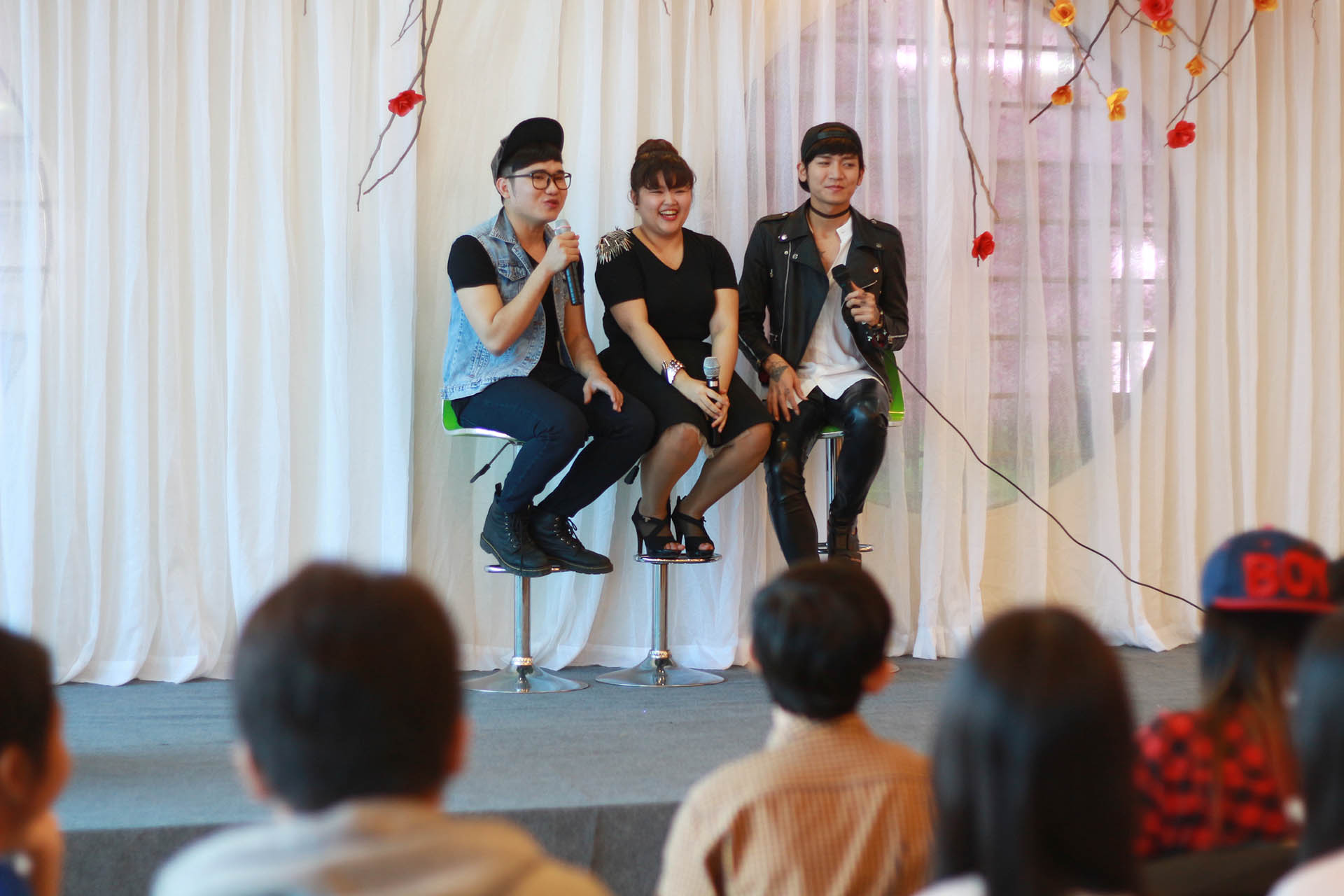 Bích Ngọc và hai anh chàng MC dễ thương khuấy động chương trình. |
