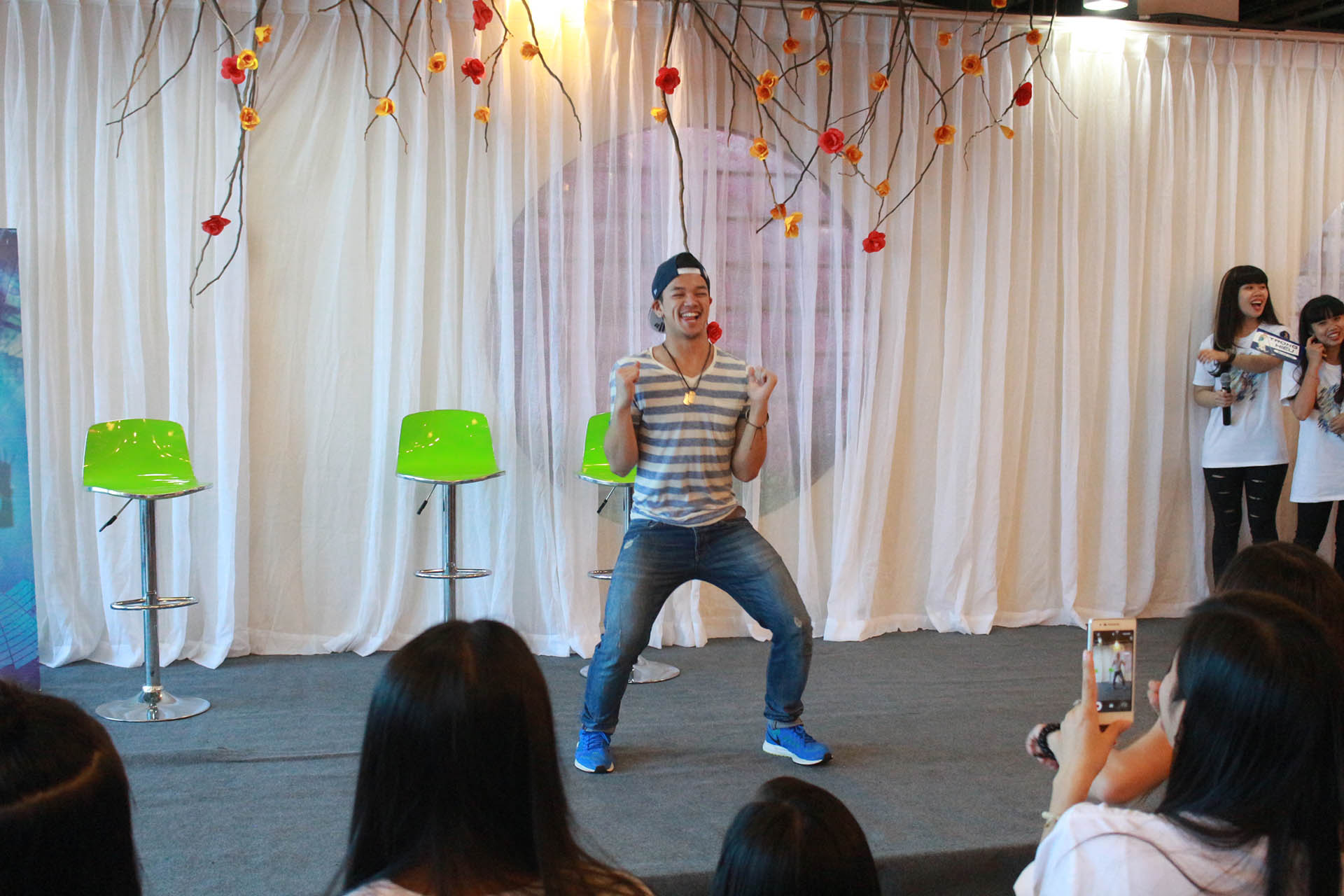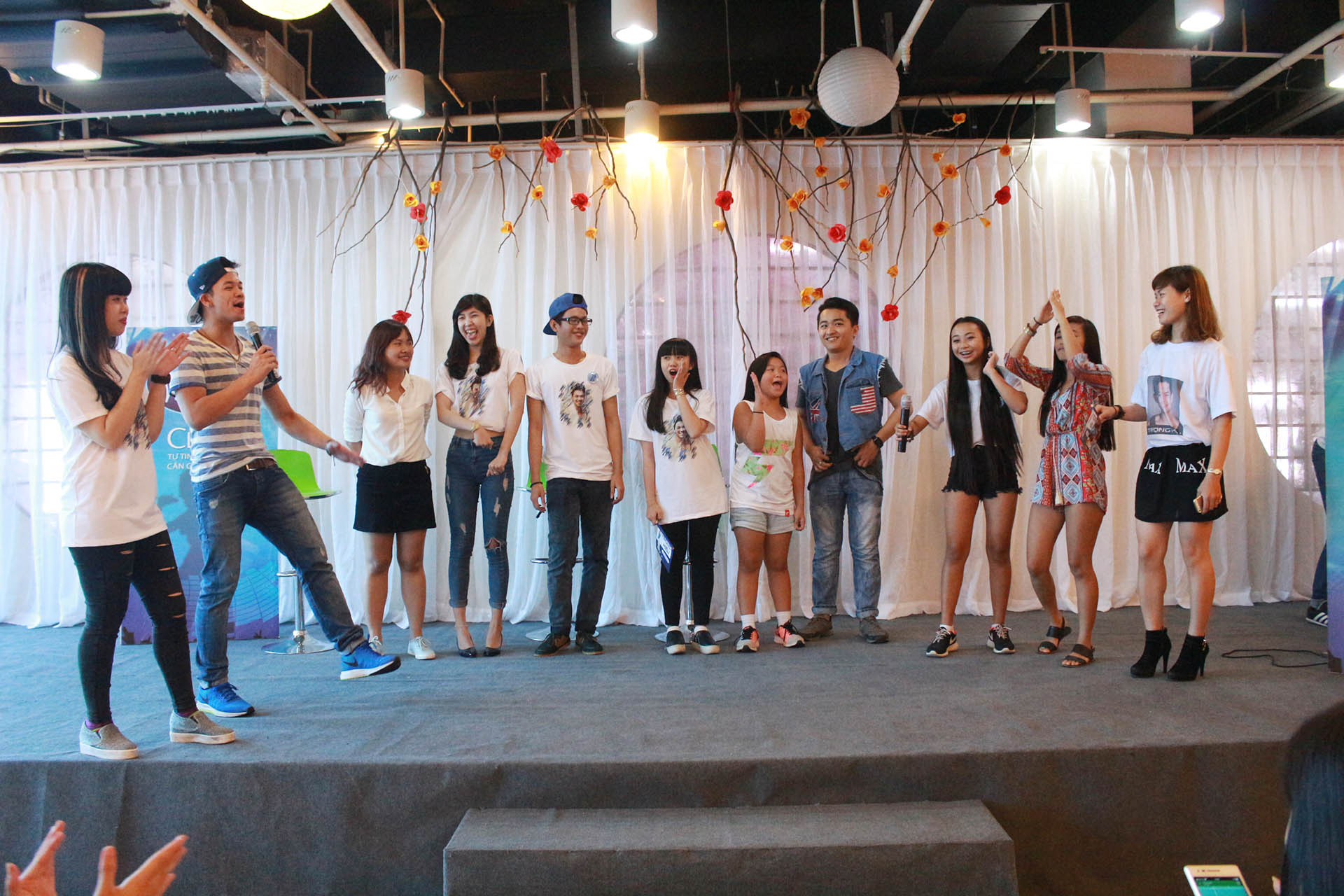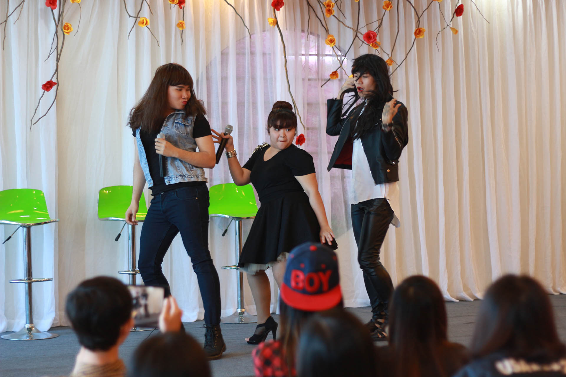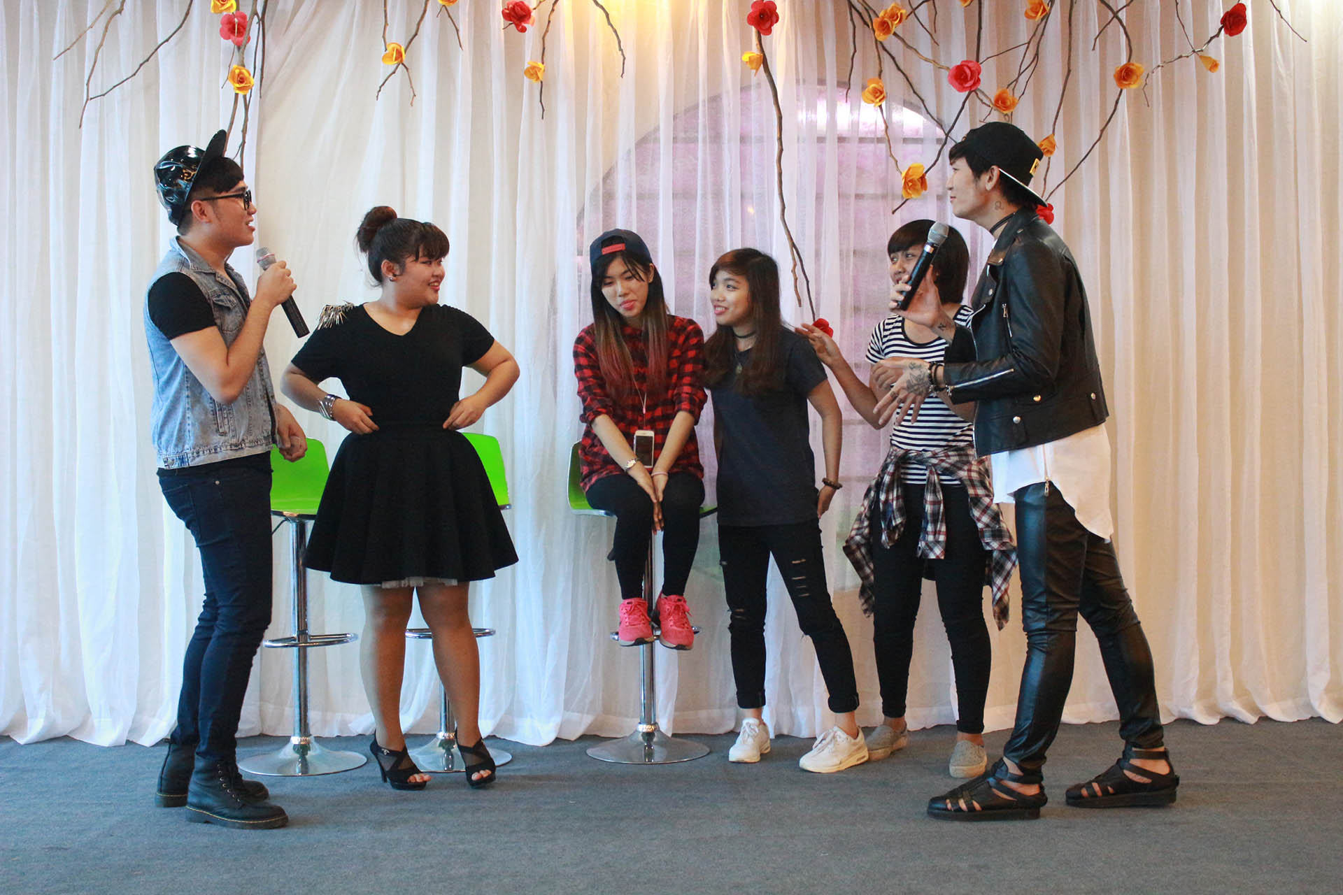 Ngay từ đầu buổi giao lưu, Bích Ngọc cùng hai anh chàng MC đáng yêu đã khuấy động không khí khi hoá thân thành “cô nàng mũm mĩm” – phiên bản lỗi với những vũ điệu bốc lửa trong ca khúc Thức tỉnh.